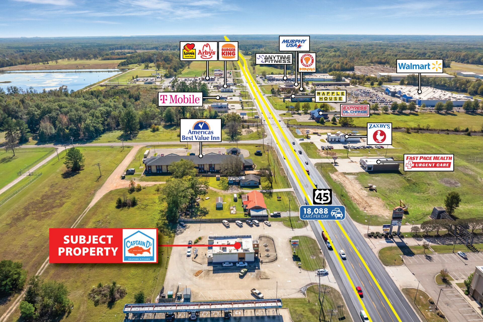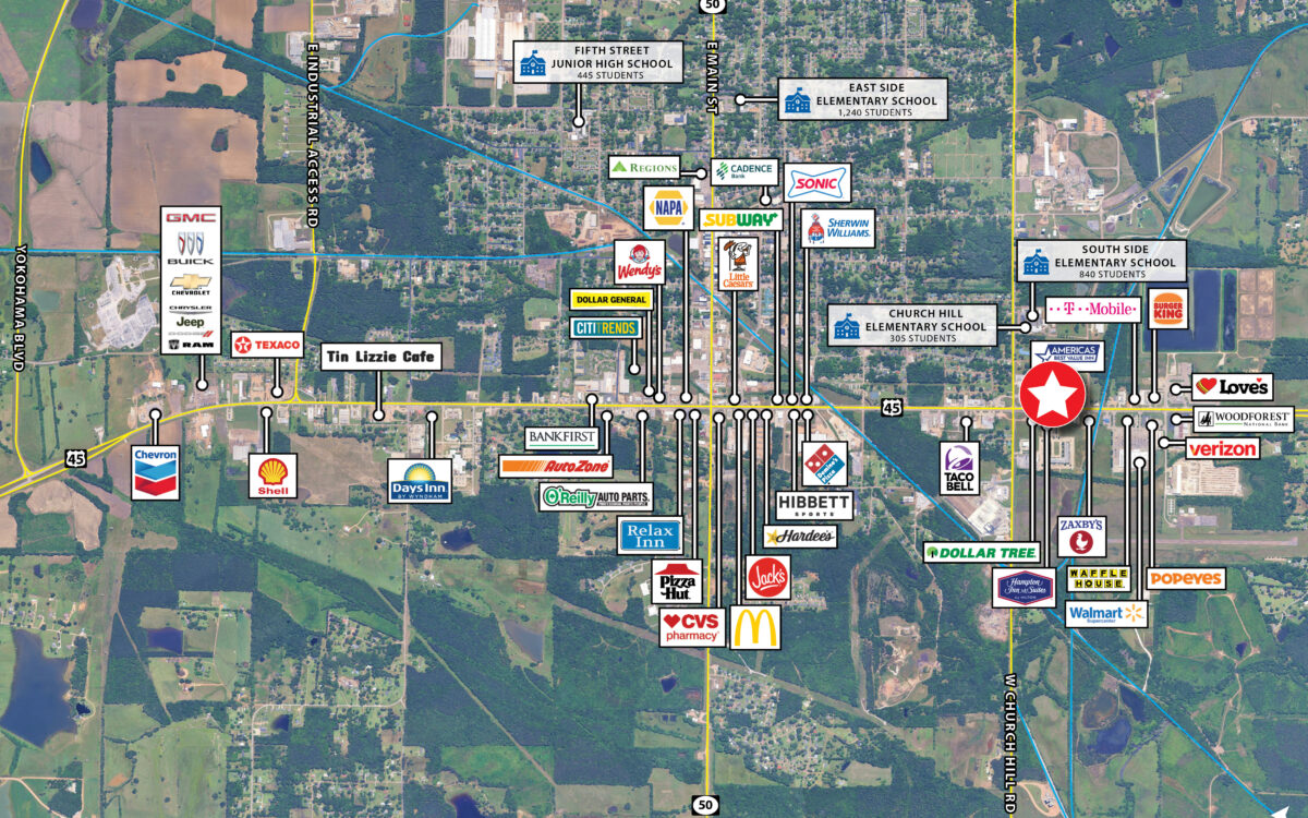 • STRONG SURROUNDING RETAIL: Surrounded by leading national retailers including Walmart, Burger King, Zaxby’s, Waffle House, and Popeye’s providing consistent traffic and consumer draw to the area