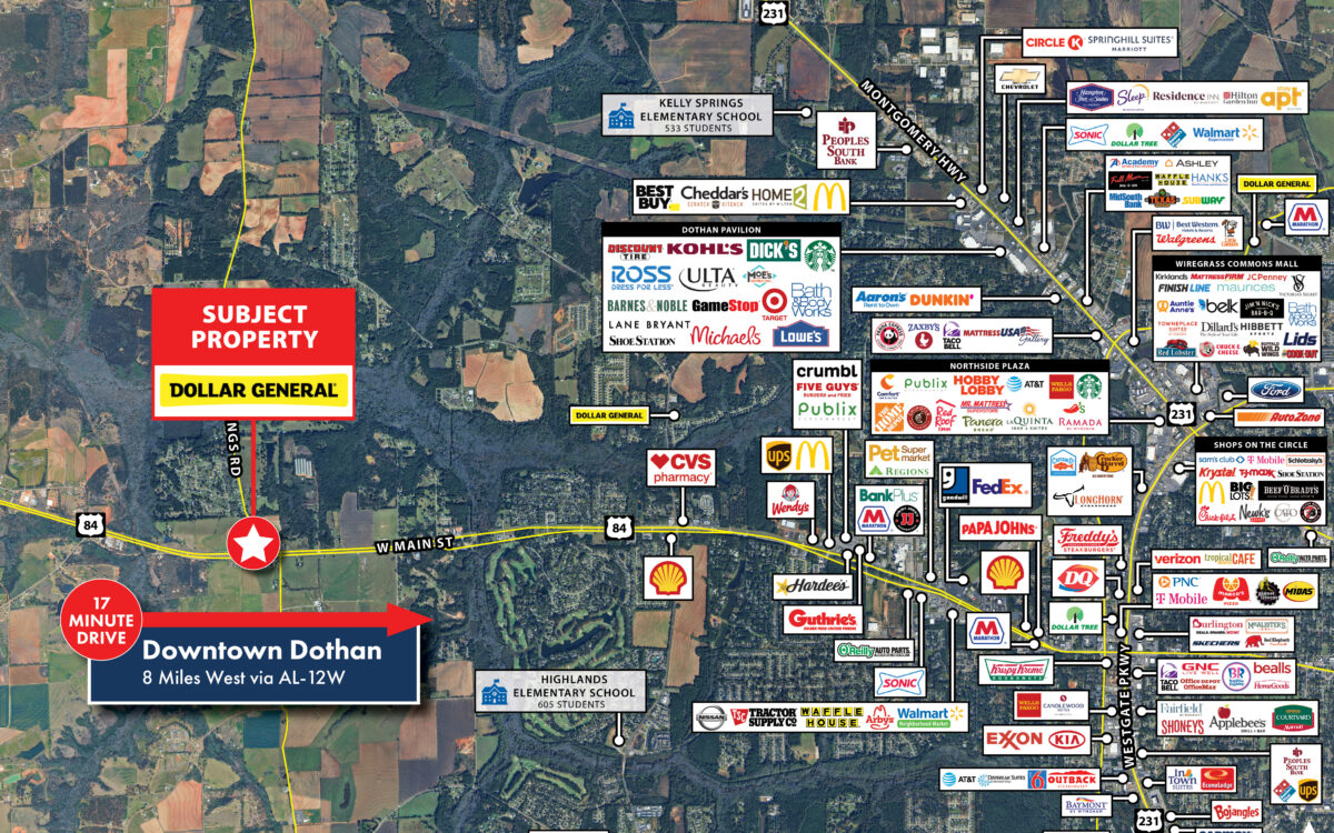 • Proximity to RTJ Trail: Positioned near the Robert Trent Jones Golf Trail at Highland Oaks, one of the nation’s largest and most acclaimed golf course networks, attracting hundreds of thousands of visitors annually across Alabama. Its regional draw enhances area activity, boosts traffic, and adds long-term stability to surrounding retail demand.