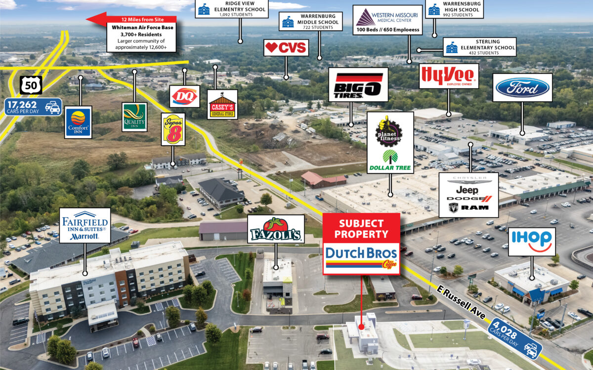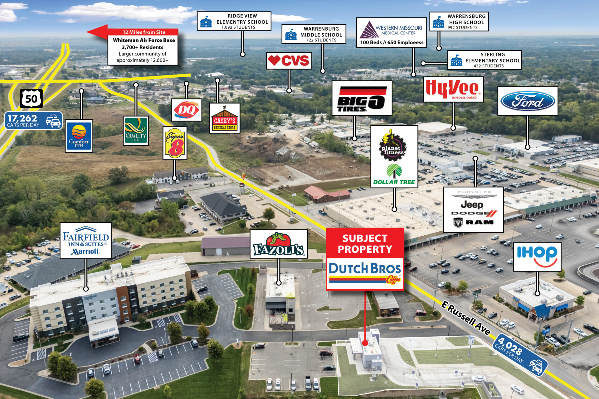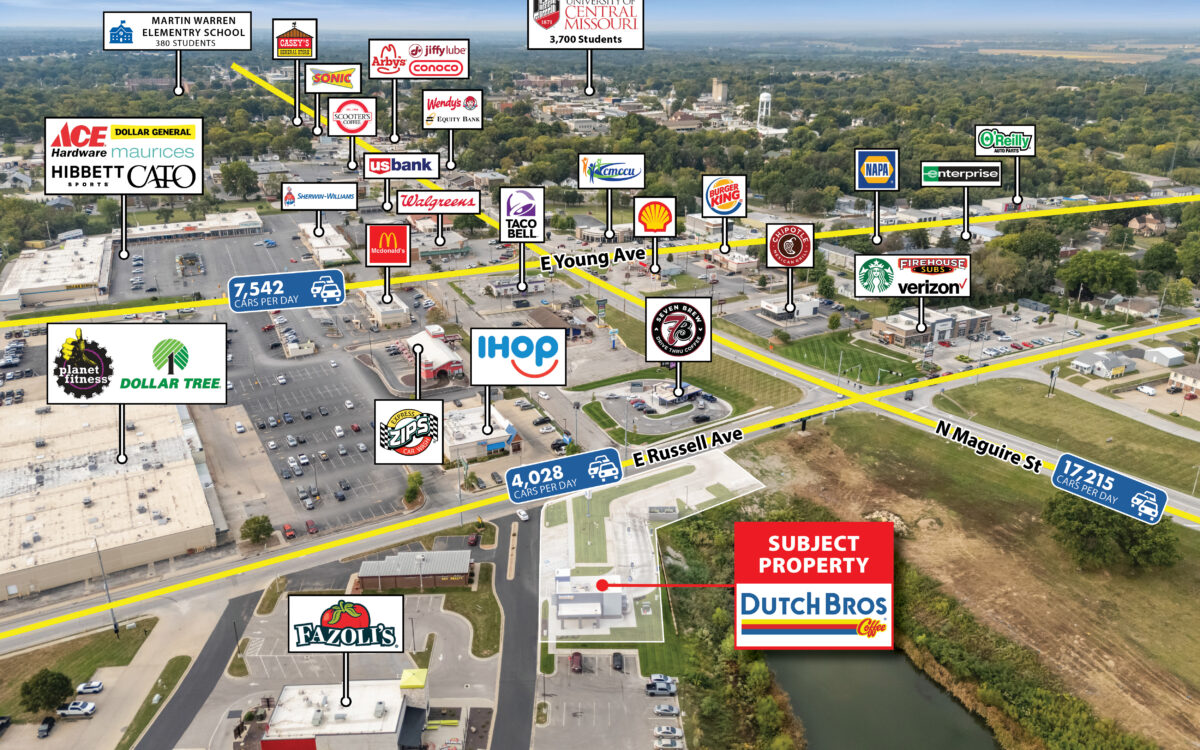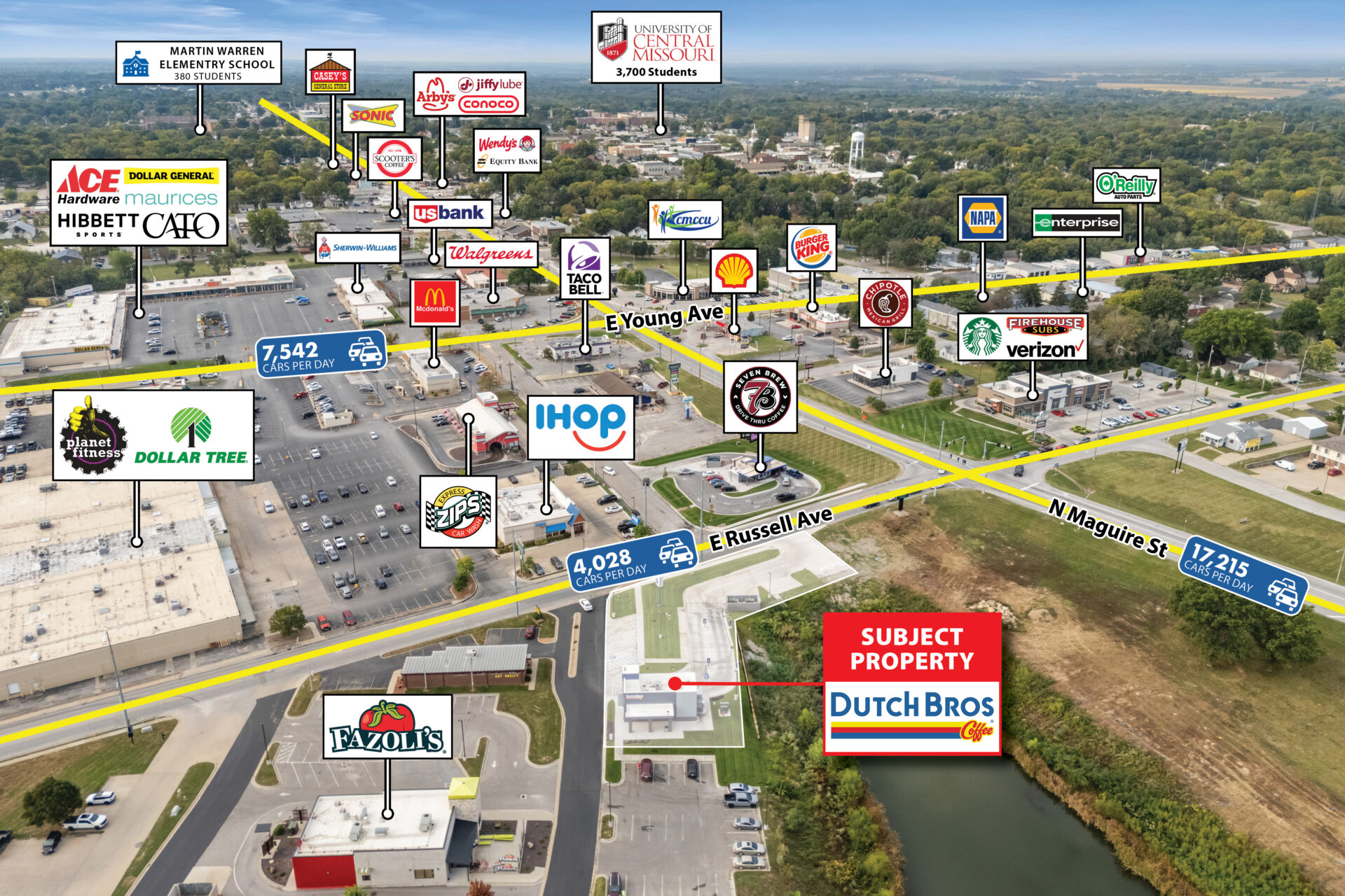 - Powerful Brand Synergy – Dutch Bros operates 900+ stores nationwide and is known for its energetic, youth-oriented brand appeal. This location leverages strong synergy with nearby traffic generators, including the University of Central Missouri (13,000+ students), resonating with Warrensburg’s young median age of 29.8.