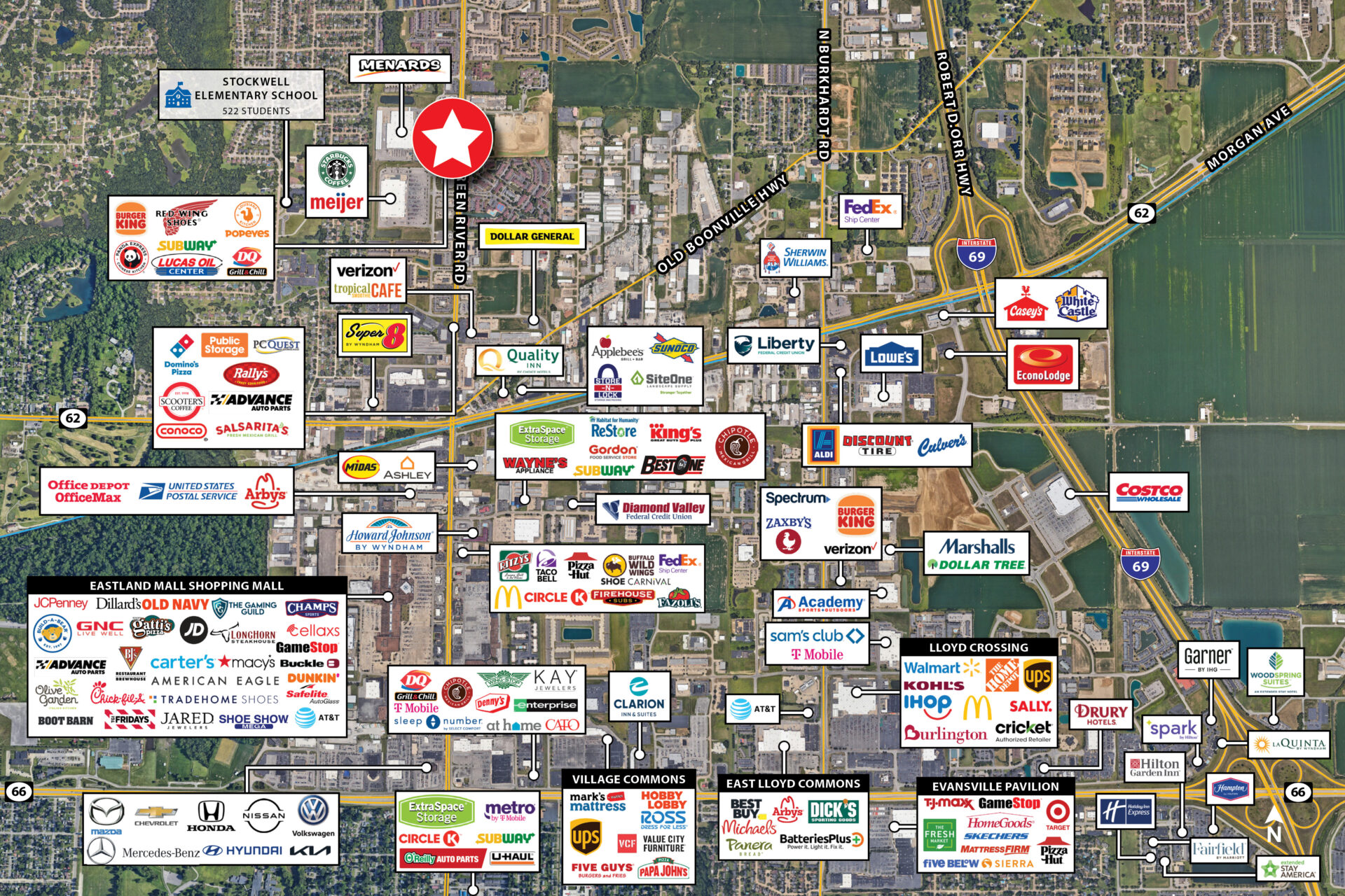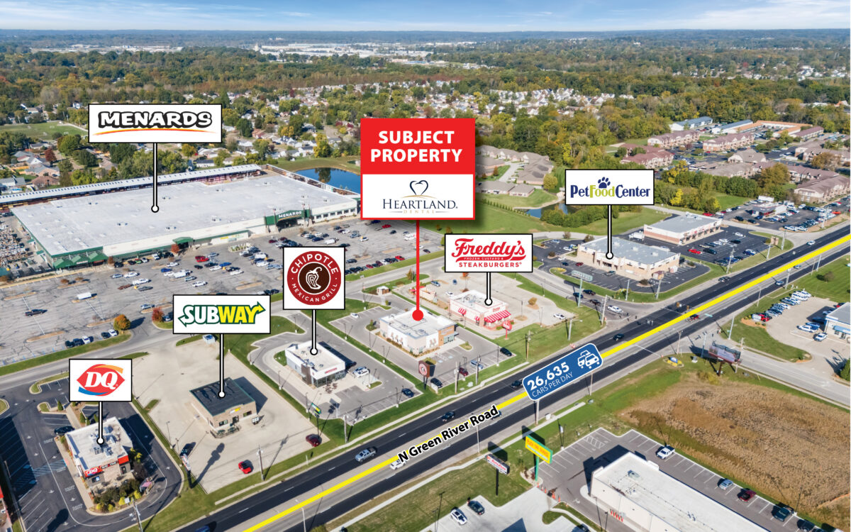 • Grocery and Home Improvement Outparcel: The property is situated off of N. Green River Rd (25,000 VPD) and benefits from anchors Menards and Meijer, as well as having Schnucks, McDonalds, Chipotle, Freddy’s, Burger King, Panda Express, and AutoZone all nearby.