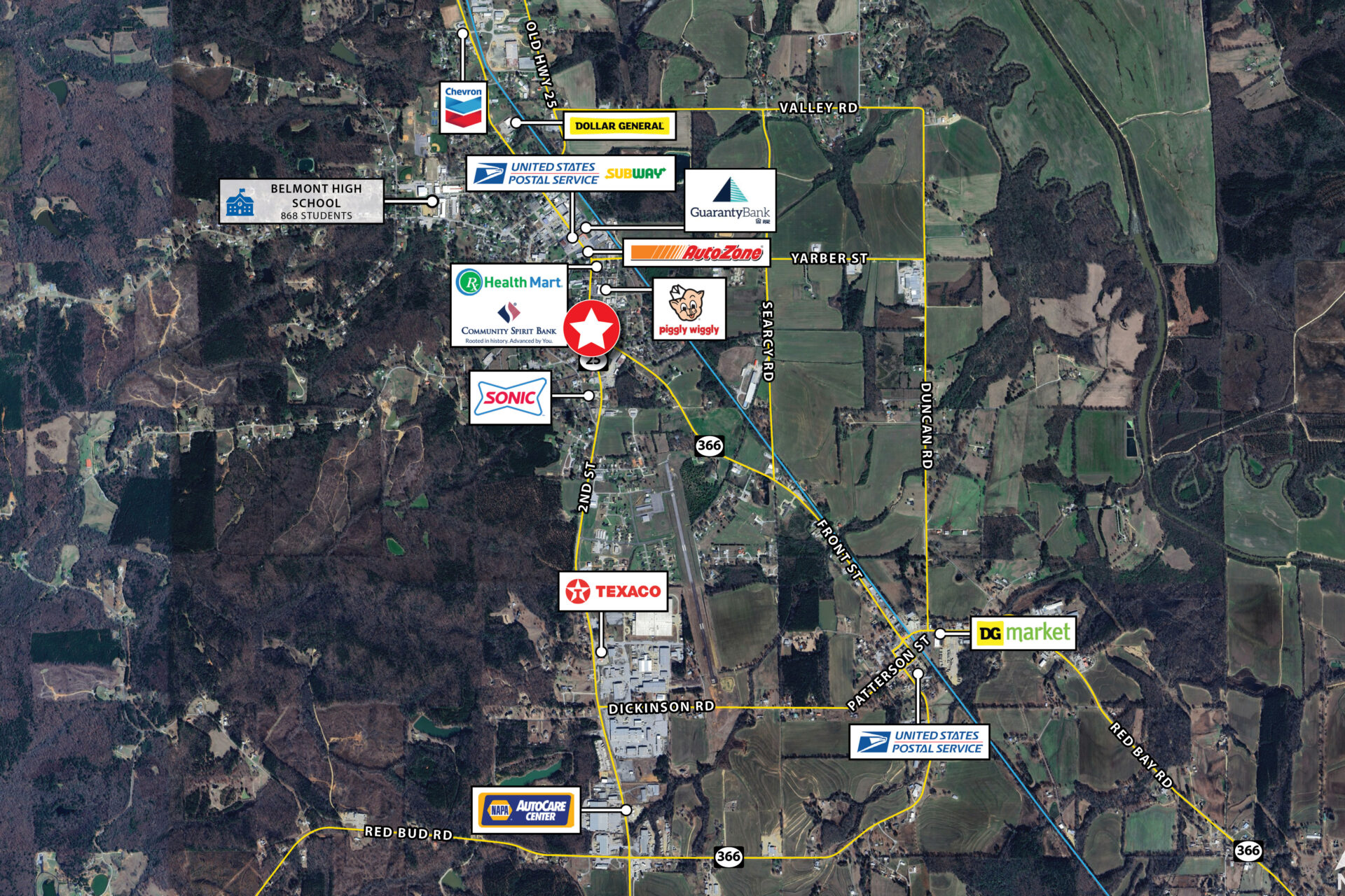 Prime Belmont Corridor Location: Highway 25 is the main north–south route through Belmont, connecting the city to I-22 and continuing north into Tennessee. Its strategic location provides exceptional visibility and access for regional traffic and commerce.