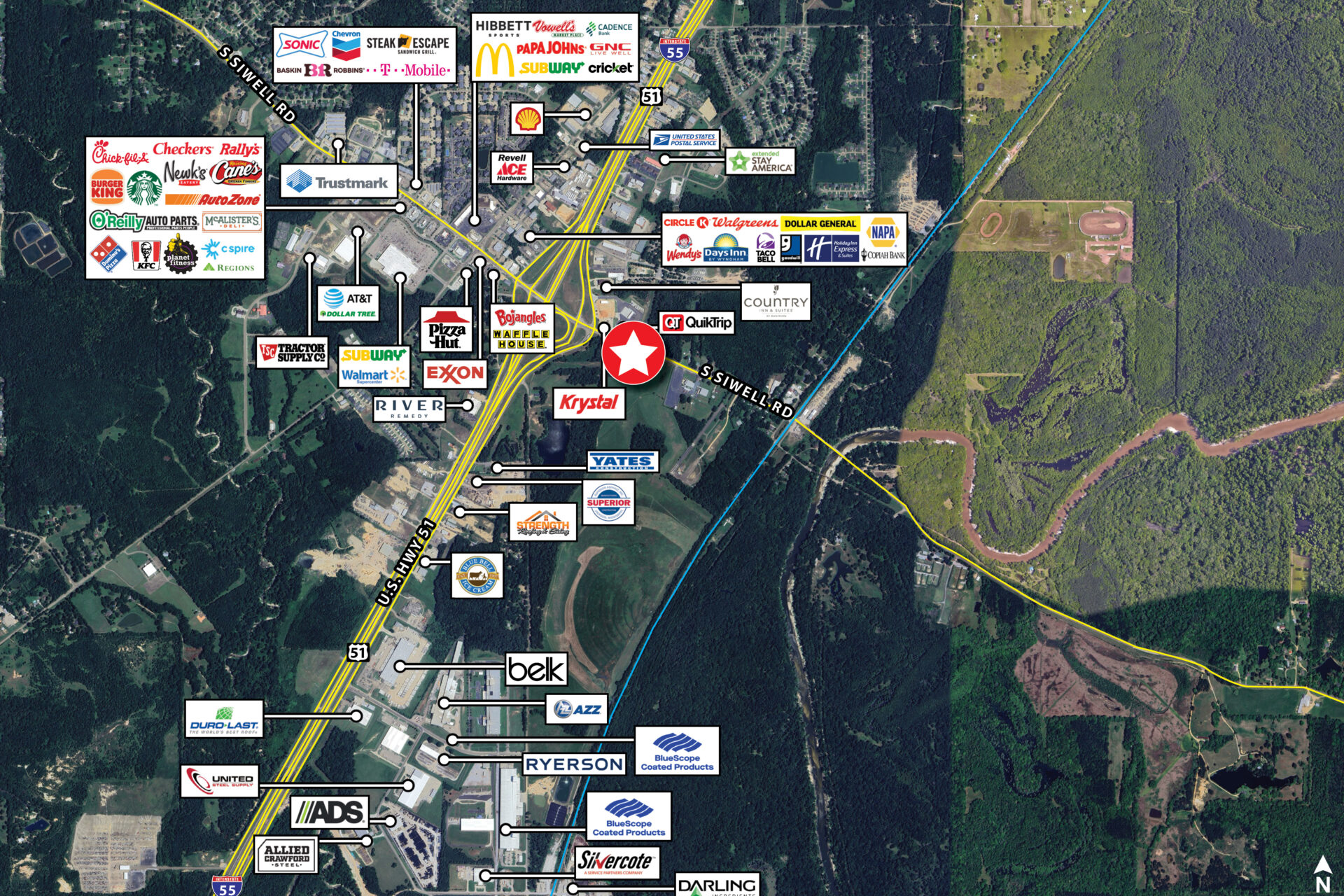 • Prime Interstate Access: Conveniently located just off Interstate 55, with exposure to nearly 40,000 vehicles per day