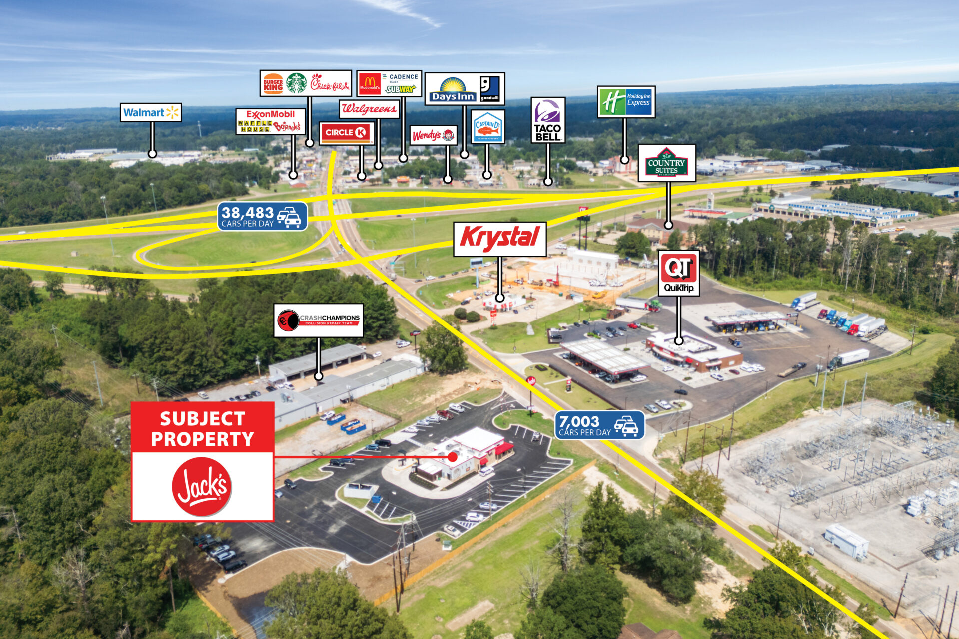 • Strong Surrounding Retail: Surrounded by leading national retailers such as Walmart, QuikTrip, Chick-fil-A, McDonald’s, and Taco Bell