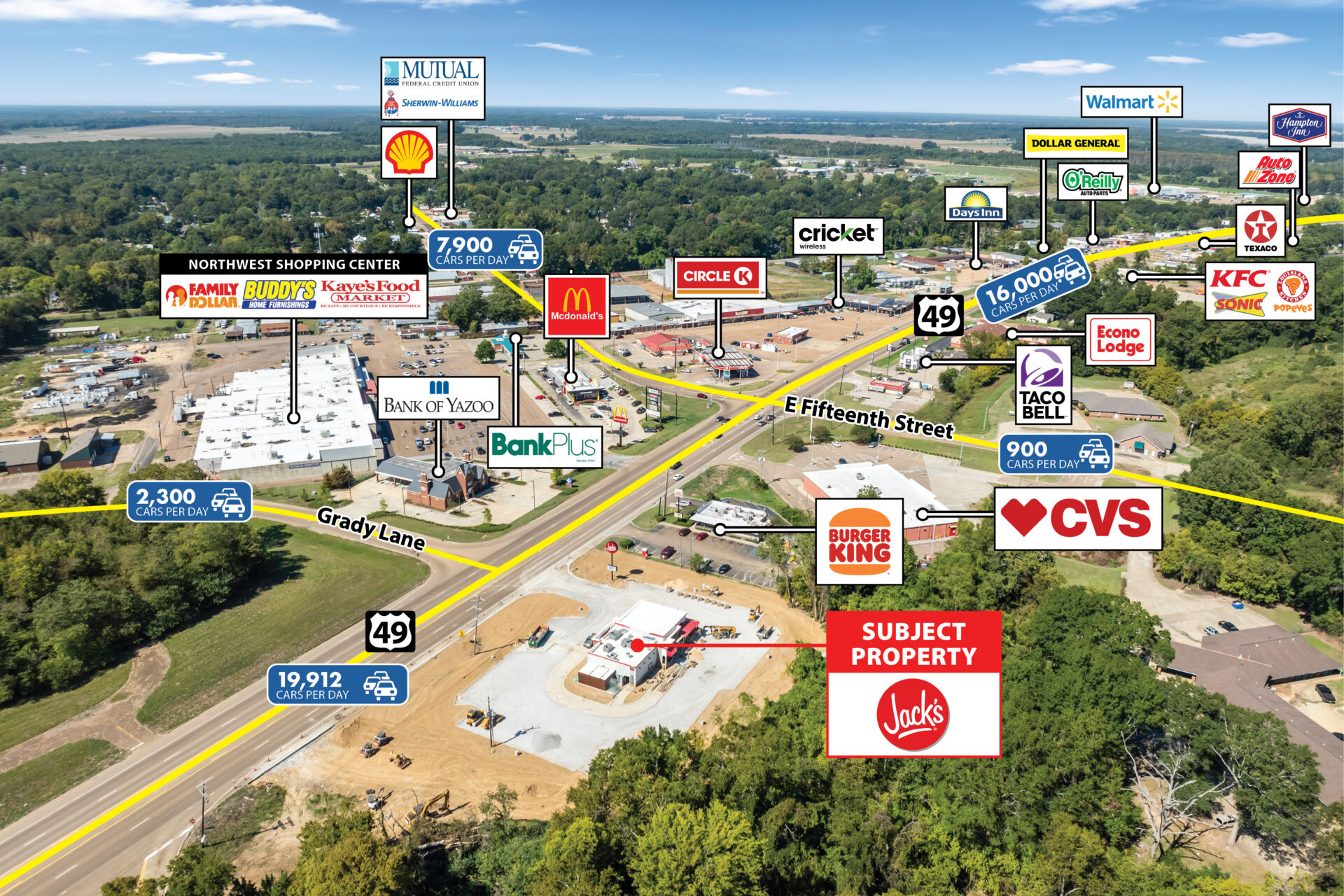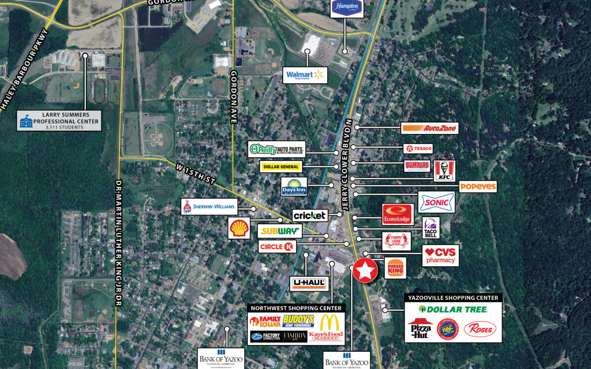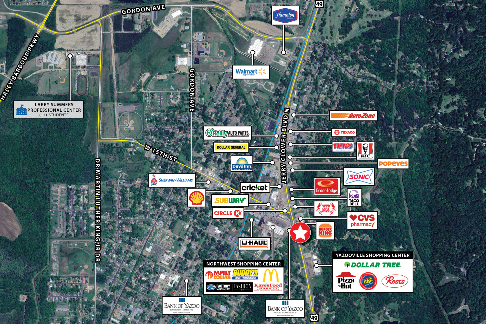 • Strategic Jerry Clower Blvd Location: Located along Yazoo City’s main commercial corridor (17,000 VPD), the site offers excellent visibility, steady traffic exposure, and convenient access to surrounding retail and residential areas