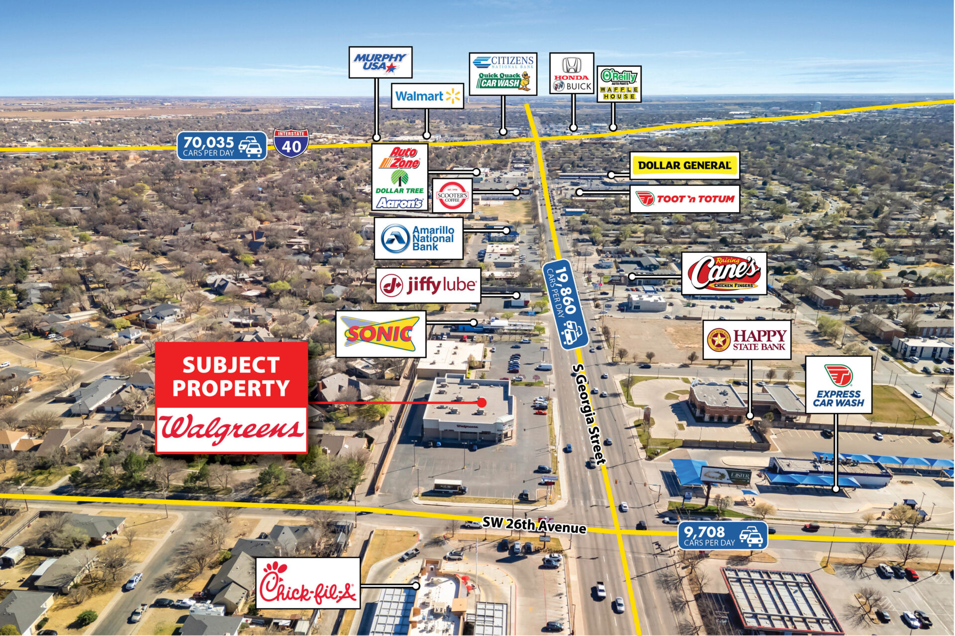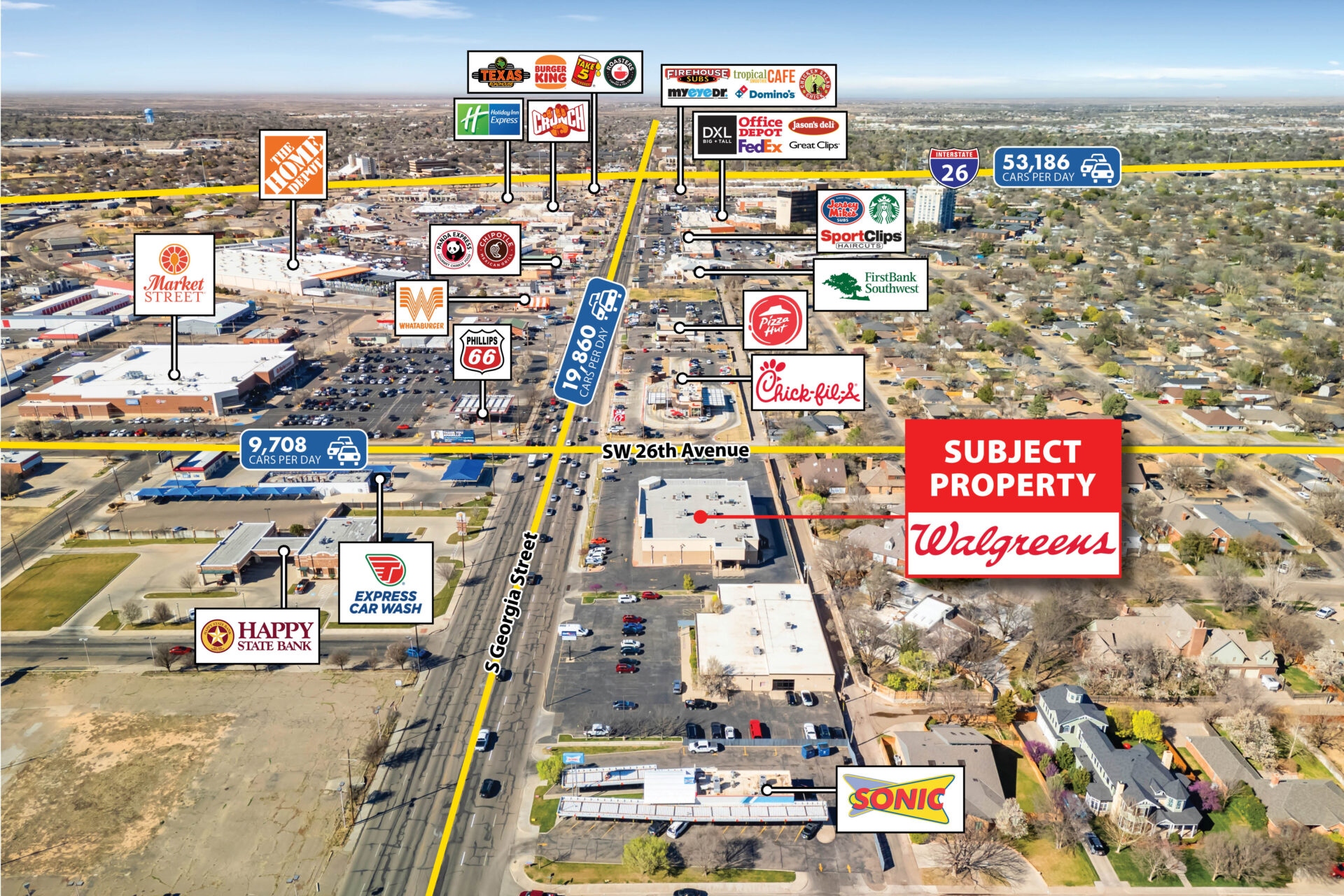 Prime Visibility & Traffic Exposure: Strategically positioned along S Georgia Street in Amarillo with exposure to 25,000+ vehicles per day, the property benefits from excellent visibility and consistent daily traffic flow.