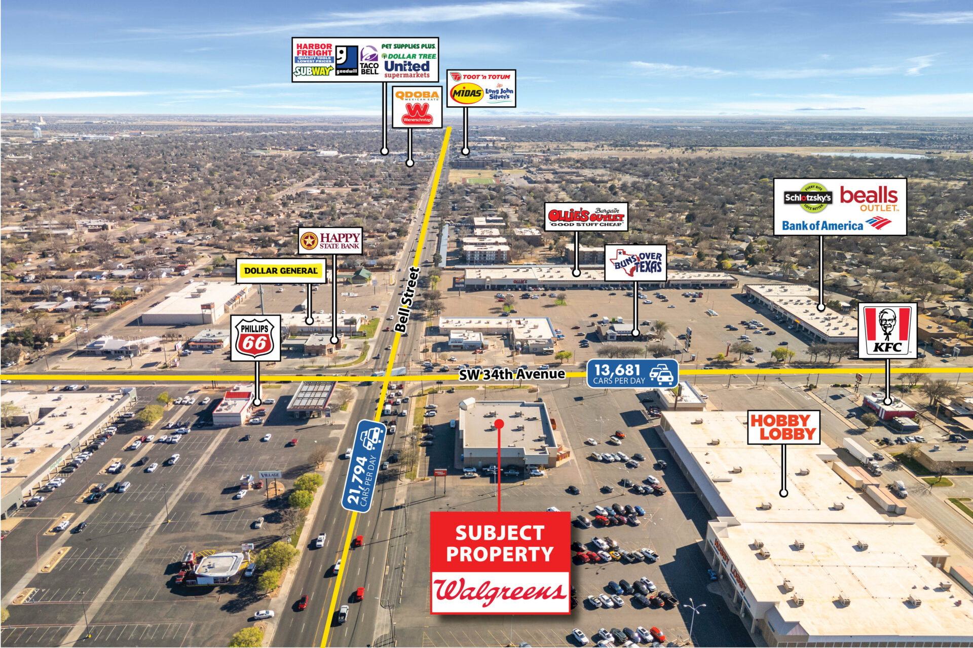 • Prime Visibility & Traffic Exposure: Located at a signalized hard corner along Bell Street, the property benefits from excellent visibility, direct access, and exposure to 25,000+ vehicles per day—driving consistent consumer traffic.
